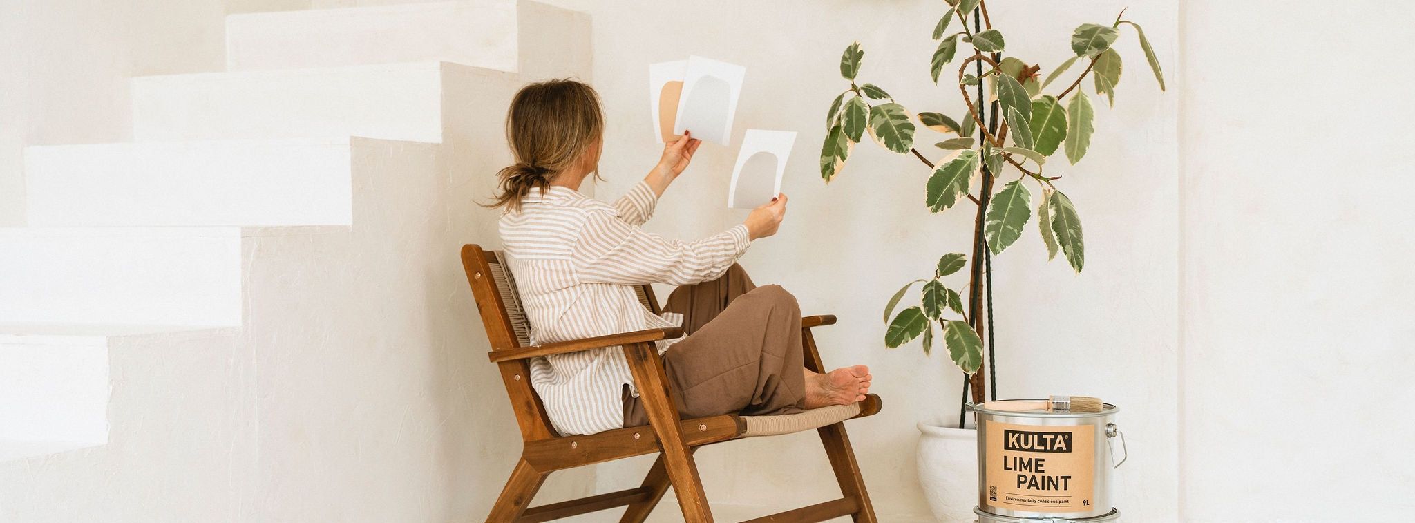 KULTA limewash paint is a natural, breathable, and environmentally friendly paint. It provides excellent moisture regulation and protection against mold while giving walls a naturally matte and textured look. With its non-toxic composition, KULTA limewash paint is the perfect choice for healthy and sustainable home decoration.
